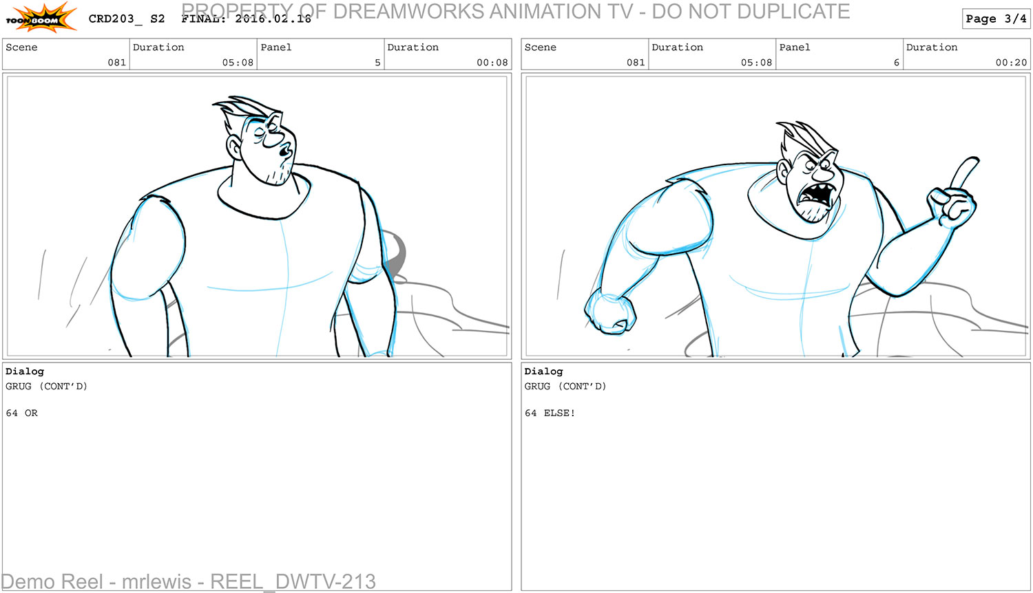 So I talked a bit about working on this show in my earlier five posts about it (which should be easily findable here on the site). The last two seasons are now on Netflix, which means I can finally show my storyboard revision work from those episodes!